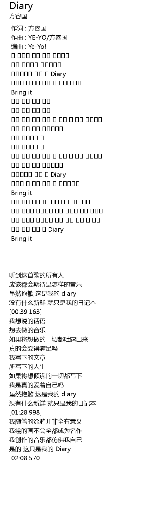 | [00:01.000] | 作曲 : YE-YO/方容国 |