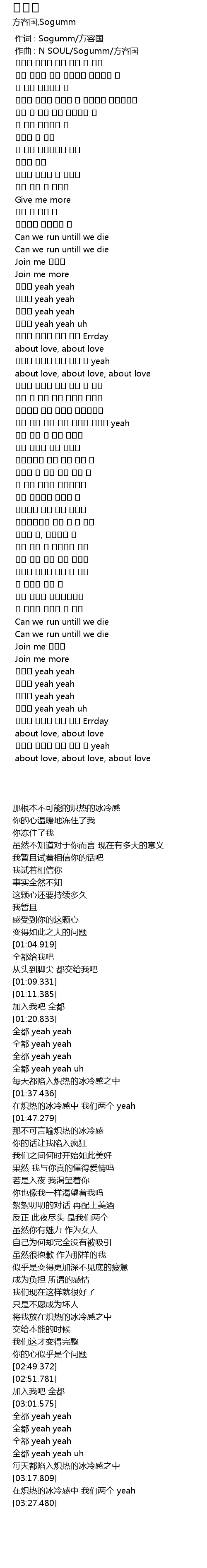 | [00:00.000] | 作词 : Sogumm/方容国 |