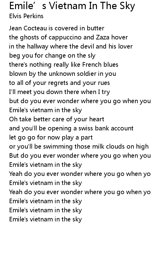 Emile’s Vietnam In The Sky Emile' s Vietnam In The Sky Lyrics