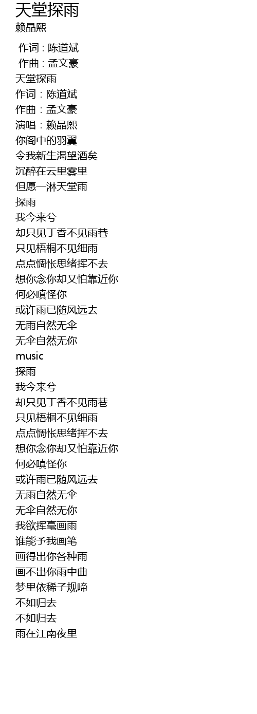 | [01:18.72] | zhī jiàn wú tóng bú jiàn xì yǔ |