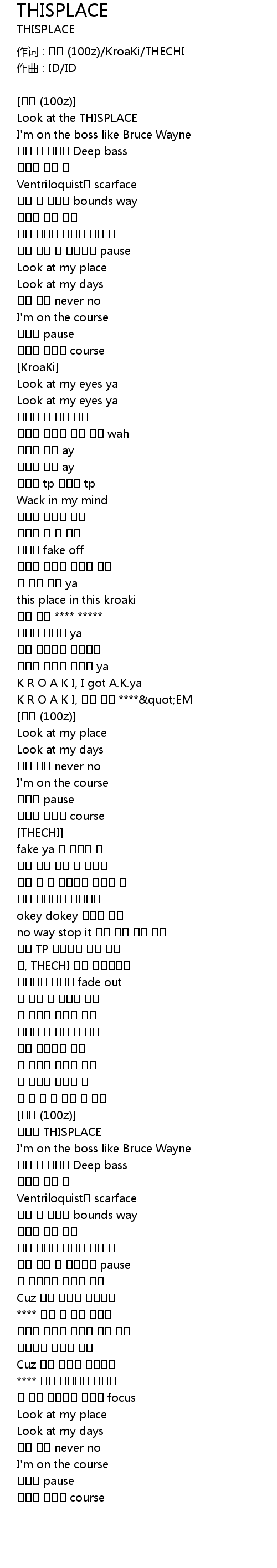 | 作词 : 백지 (100z)/KroaKi/THECHI | |