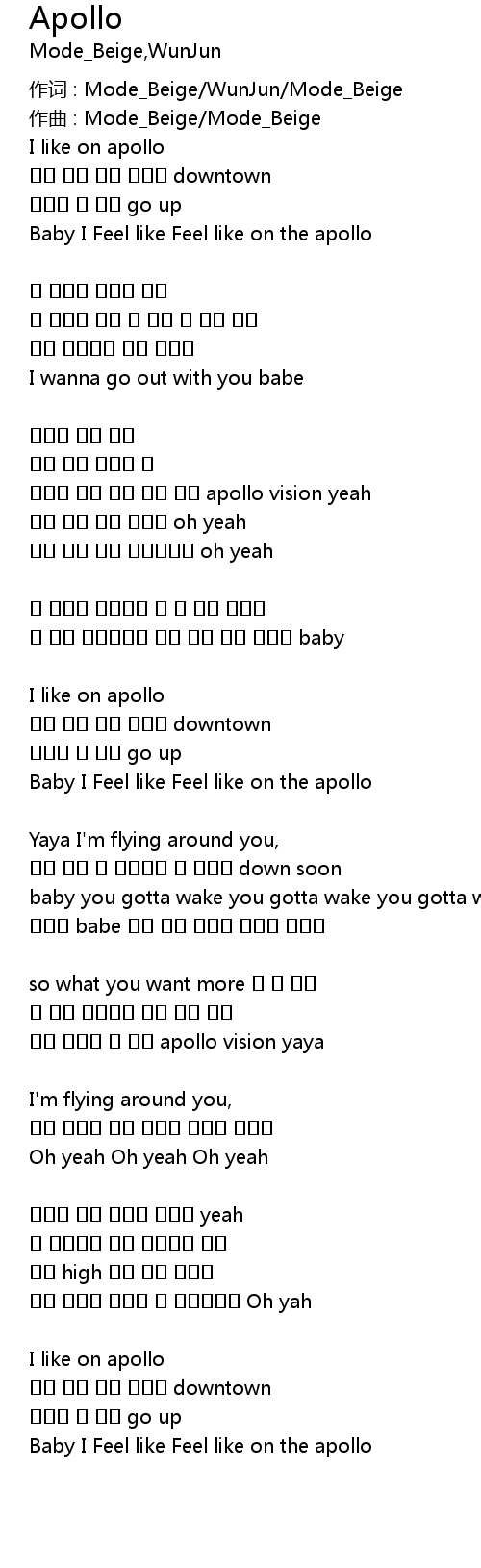| 아무말 없이 너의 품에 안겨 apollo vision yeah | |