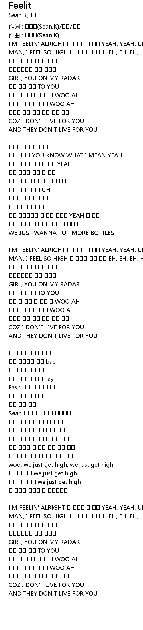 | I'M FEELIN' ALRIGHT 내 기분은 저 위에 YEAH, YEAH, UH | |