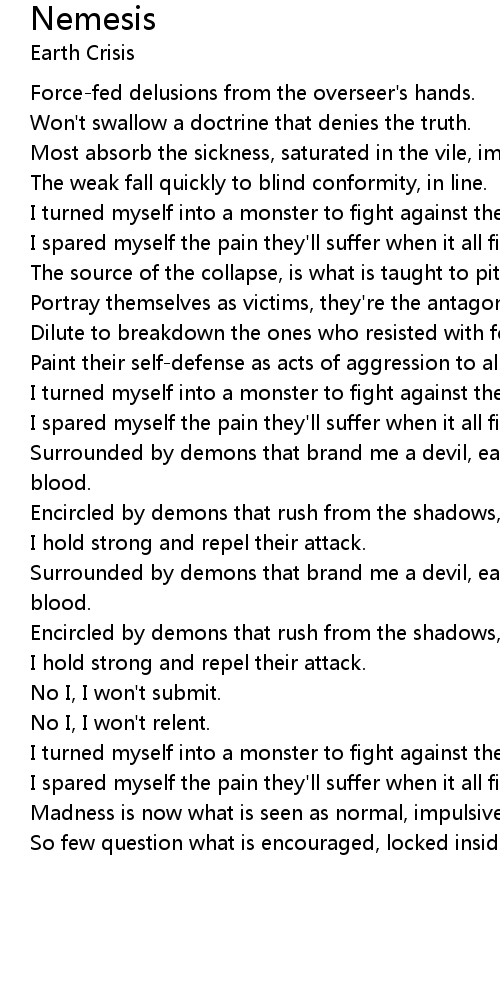 Surrounded by demons that brand me a devil, each single one thirsts for my blood. |