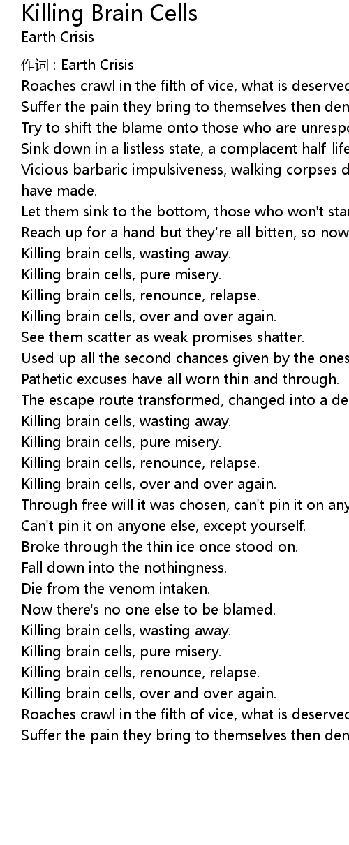 | Killing brain cells, renounce, relapse. | |