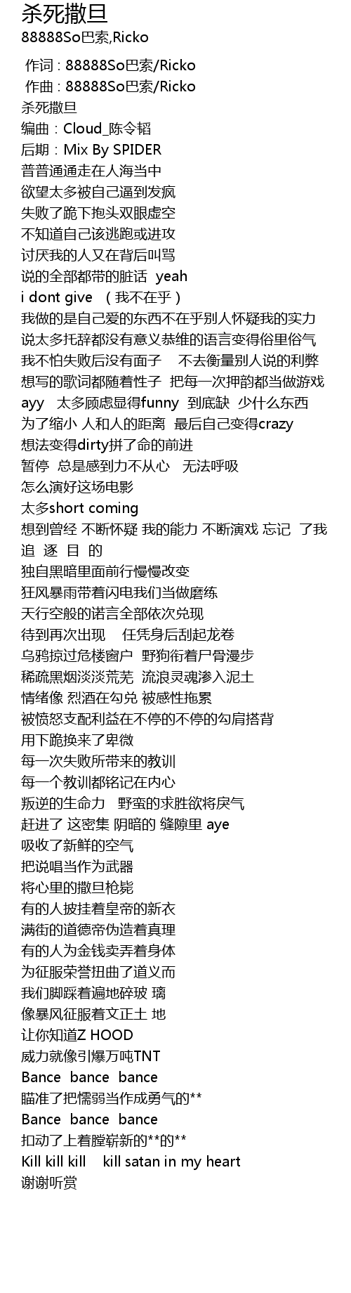 | [00:00.000] | 作词 : 88888So巴索/Ricko |
