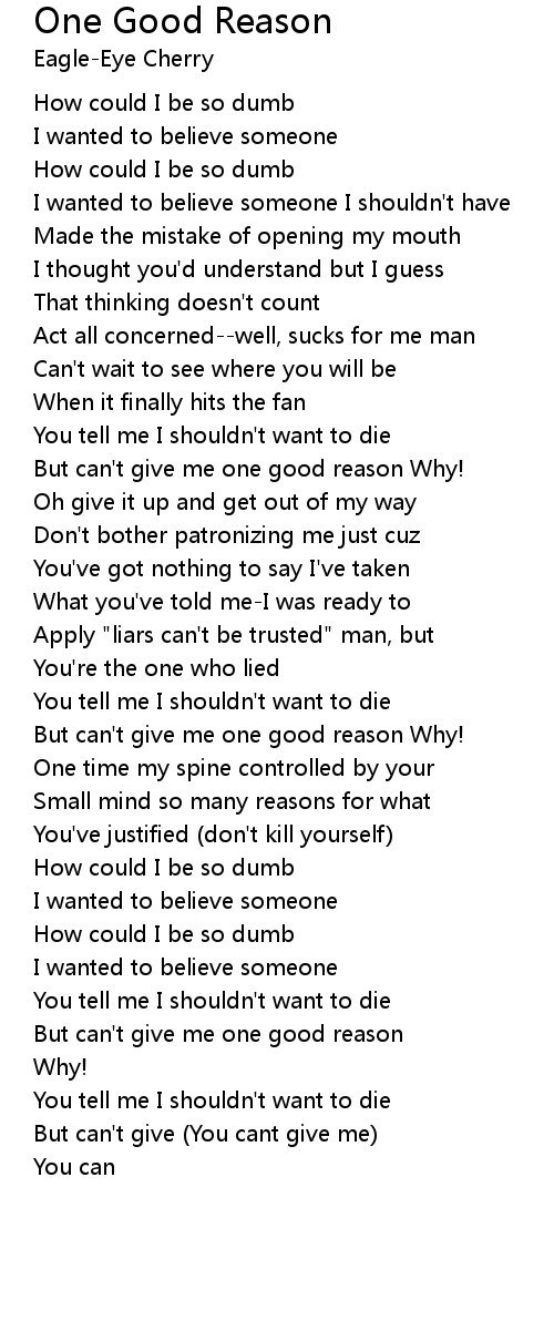 But can't give me one good reason |