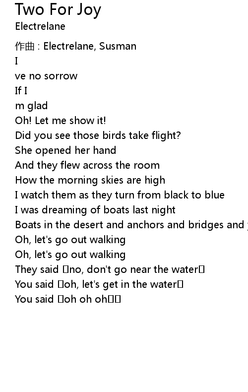 | Song | Two For Joy |