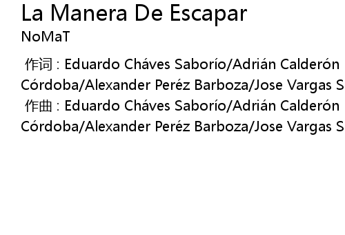 | [00:00.000] | zuò qǔ : Eduardo Chá ves Saborí o Adriá n Calderó n Có rdoba Alexander Peré z Barboza Jose Vargas Soto |