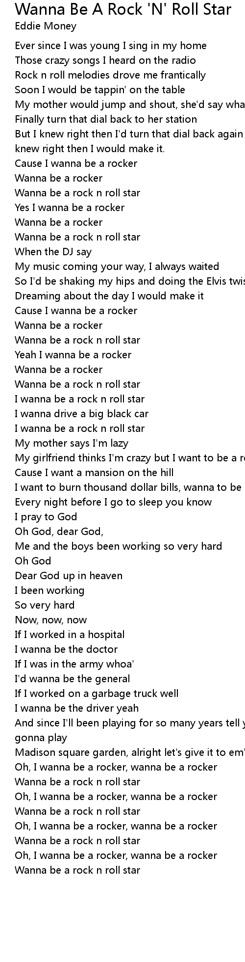 I want to burn thousand dollar bills, wanna to be a rock n roll star |