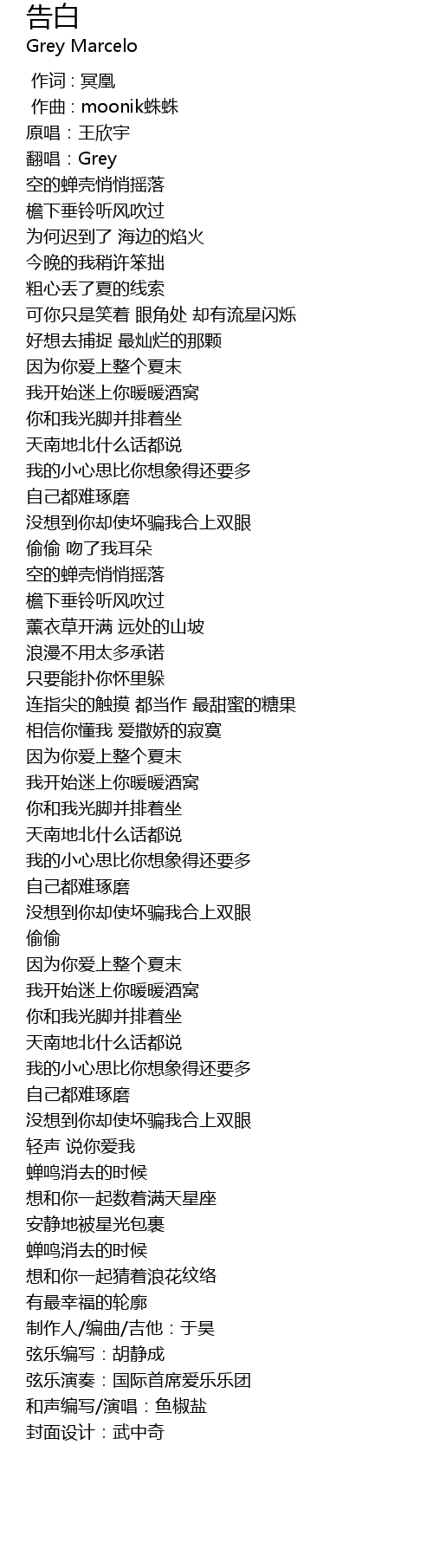 | [00:40.722] | 可你只是笑着 眼角处 却有流星闪烁 |