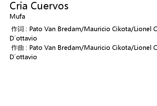 | [00:00.000] | zuo qu : Pato Van Bredam Mauricio Cikota Lionel Capodarco Diego D ottavio |