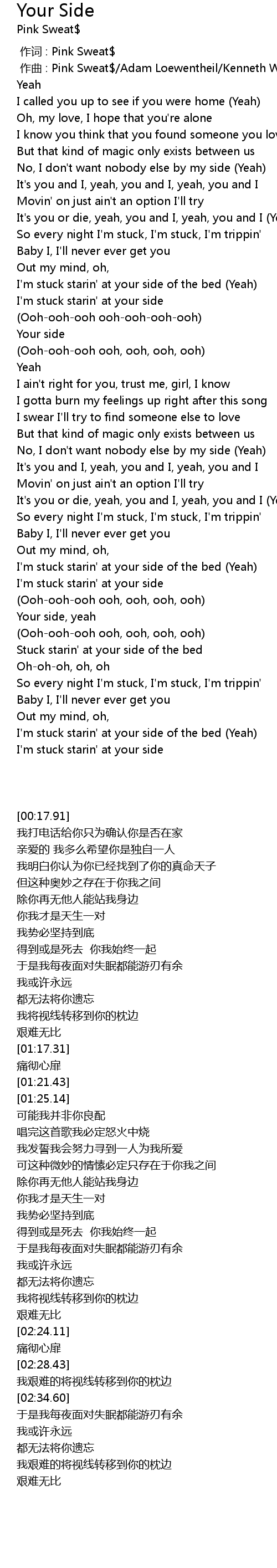 | [00:00.000] | 作词 : Pink Sweat$ |