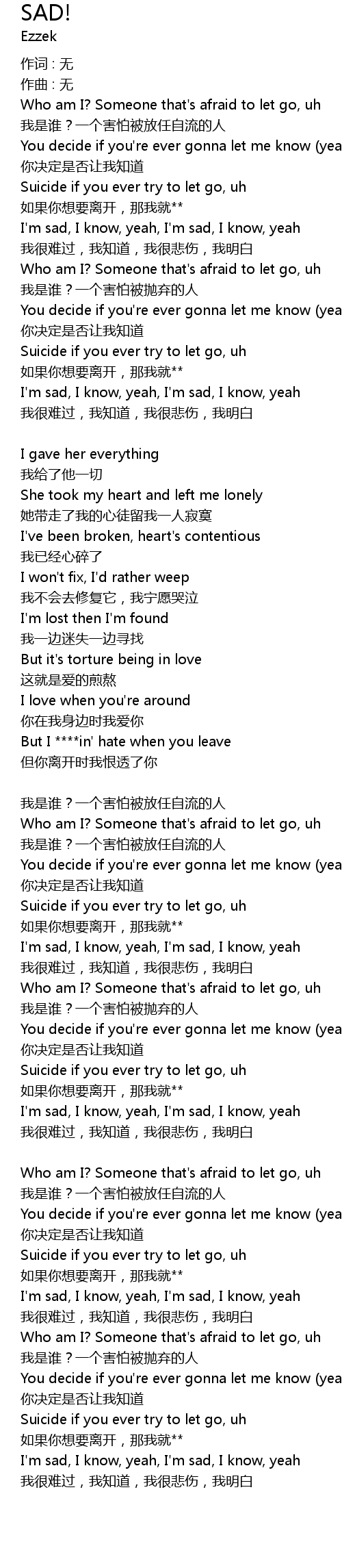 | I'm sad, I know, yeah, I'm sad, I know, yeah | |