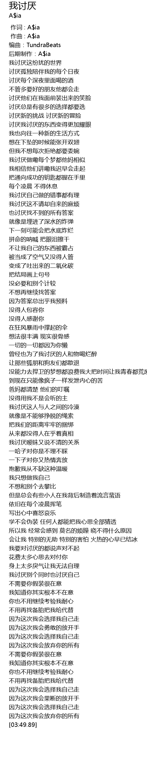 | [03:00.69] | 我讨厌别个同时也讨厌自己 |