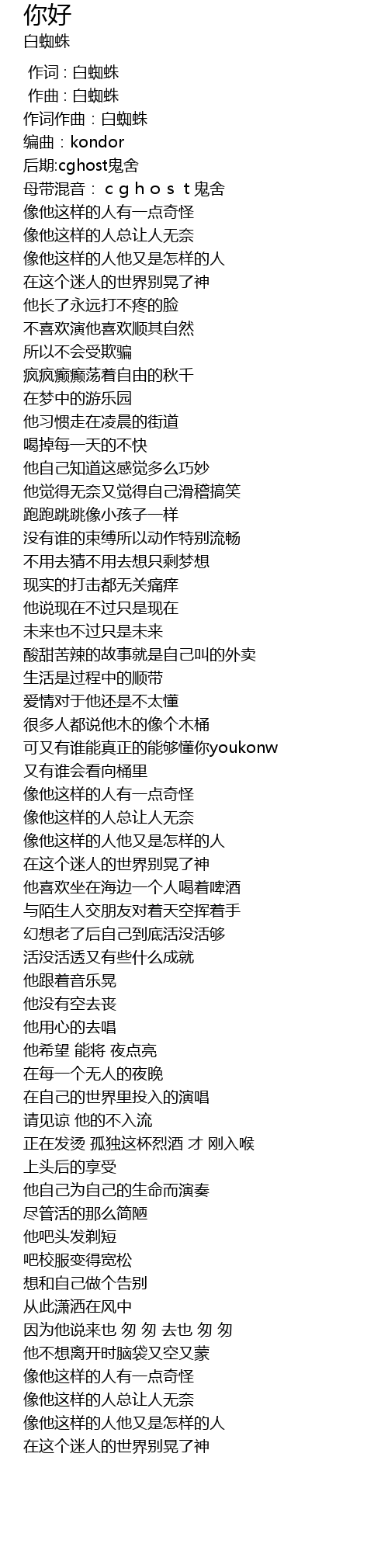 | [00:01.969] | 作词作曲:白蜘蛛 |