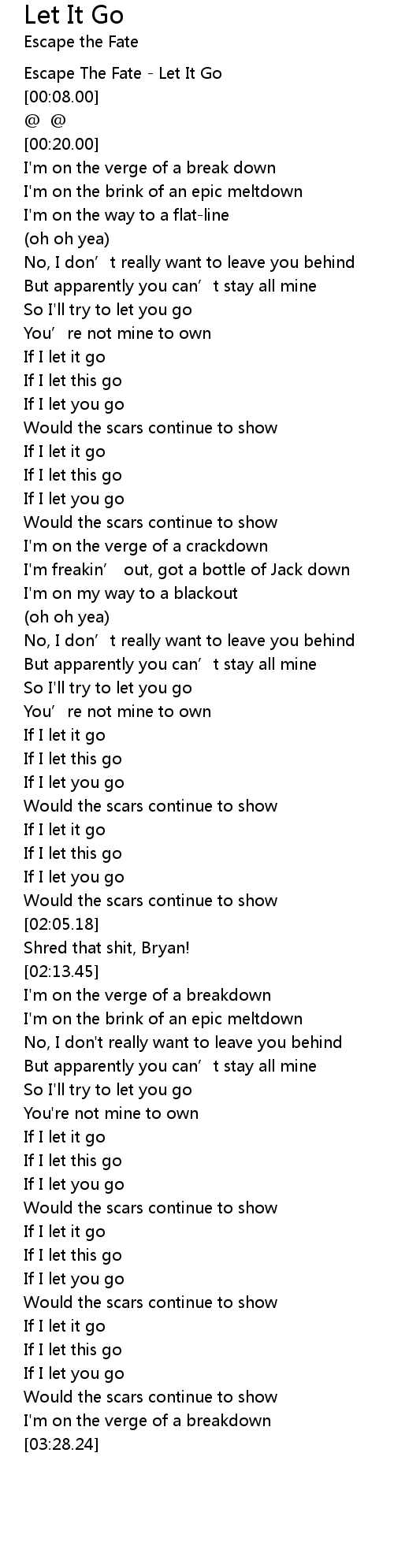 | [00:02.00] | Escape The Fate Let It Go |
