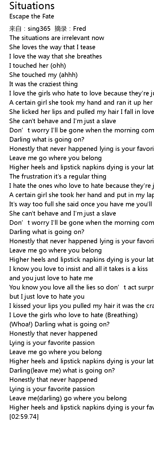 | [02:51.26] | Higher heels and lipstick napkins dying is your favorite PASSION |
