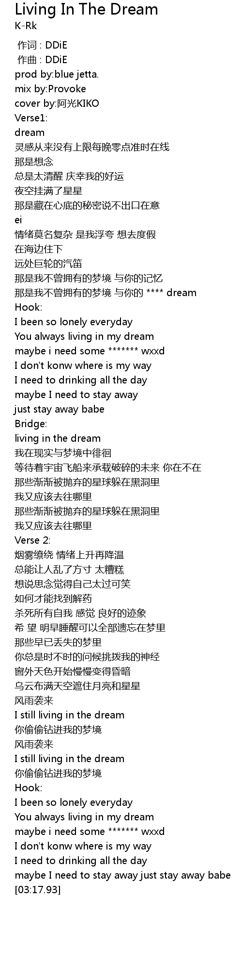 | [00:49.21] | 那是我不曾拥有的梦境 与你的 **** dream |