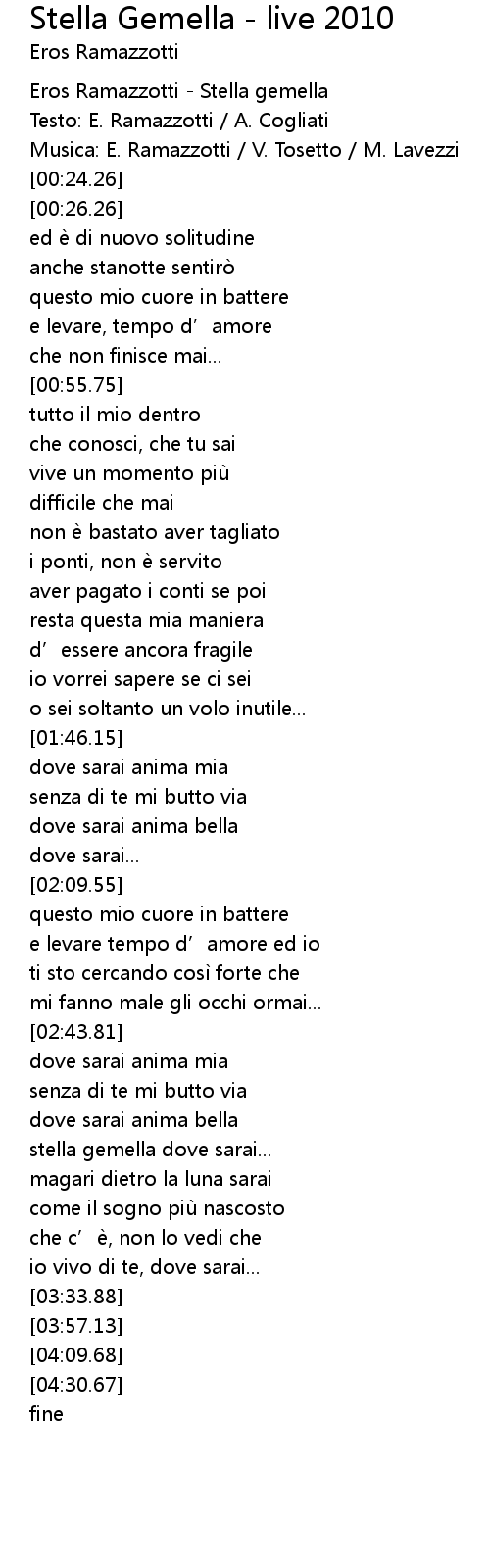 | [00:22.26] | Musica: E. Ramazzotti / V. Tosetto / M. Lavezzi |