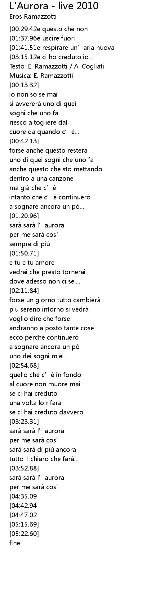 | [00:07.32] | Testo: E. Ramazzotti / A. Cogliati |