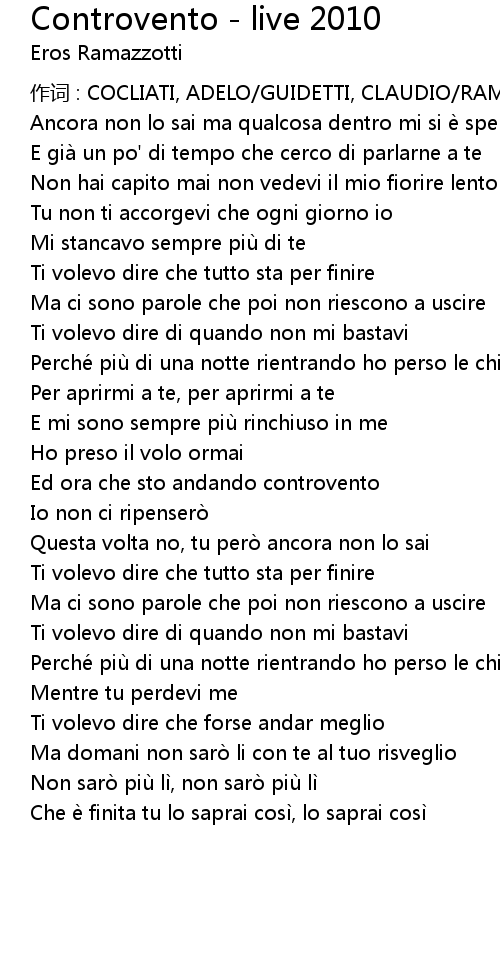 | 作词 : COCLIATI, ADELO/GUIDETTI, CLAUDIO/RAMAZZOTTI, EROS | |
