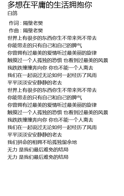 | [00:00.000] | 作词 : 隔壁老樊 |