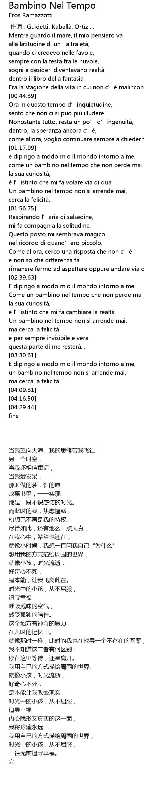 | [02:49.10] | Come un bambino nel tempo che non perde mai |