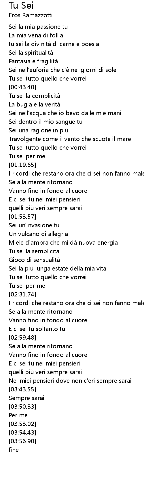 | [02:23.43] | Tu sei tutto quello che vorrei |