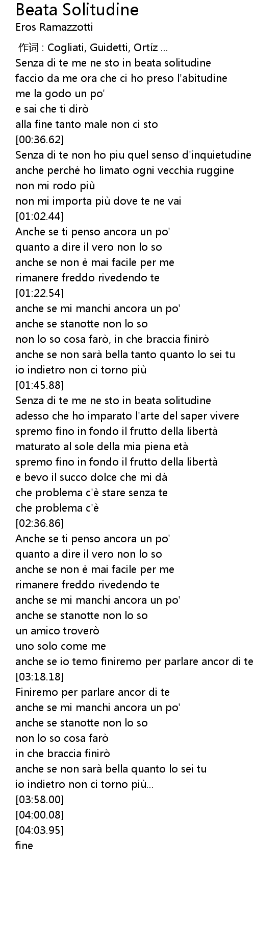 | [01:53.72] | Senza di te me ne sto in beata solitudine |