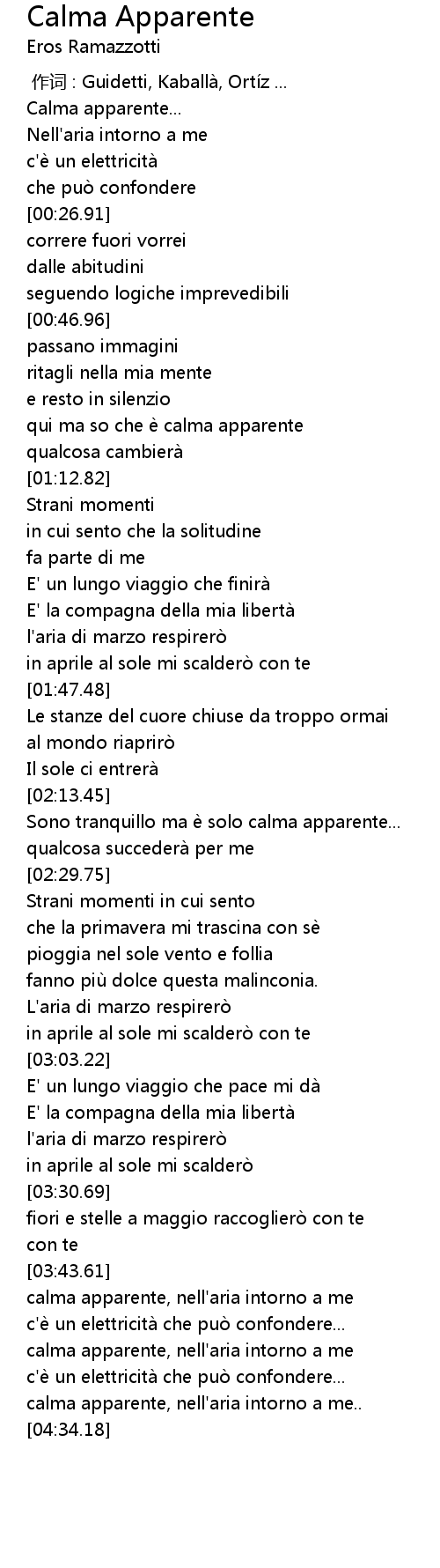| [04:26.52] | calma apparente, nell' aria intorno a me.. |