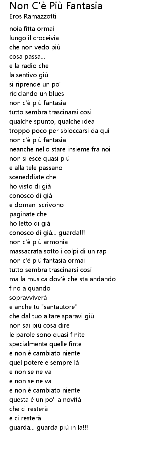 | Song | Non C'è Più Fantasia |