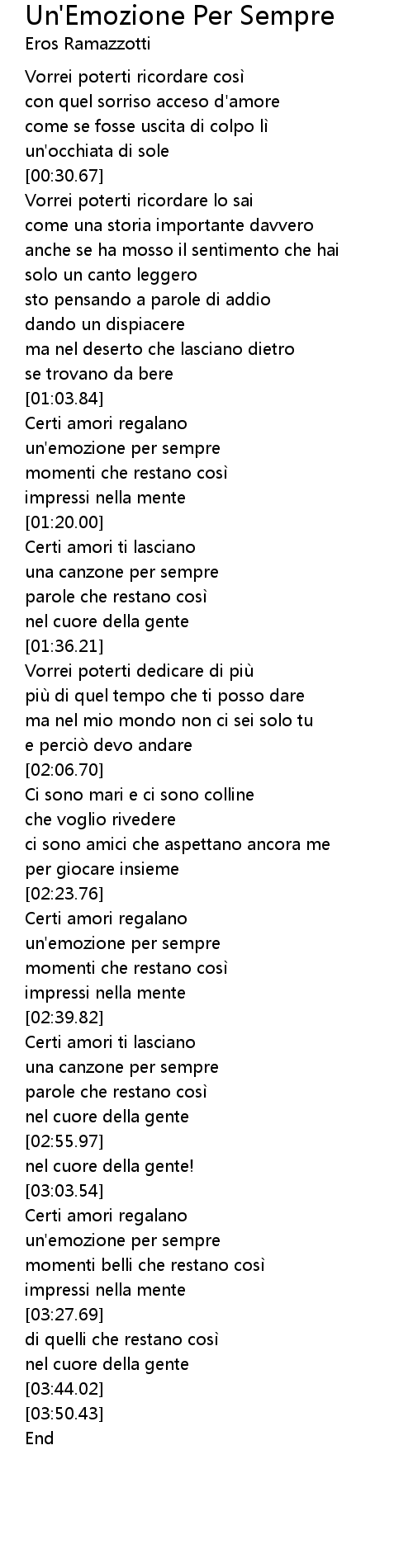 | [00:33.15] | Vorrei poterti ricordare lo sai |