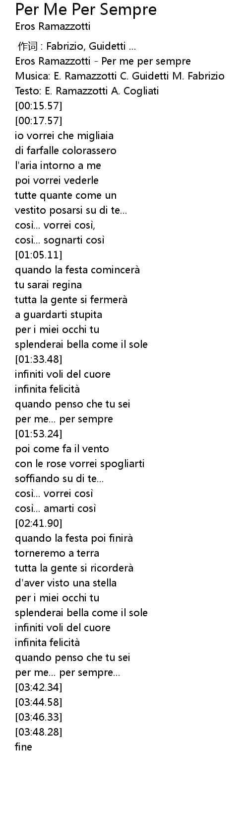 | [00:11.57] | Musica: E. Ramazzotti C. Guidetti M. Fabrizio |