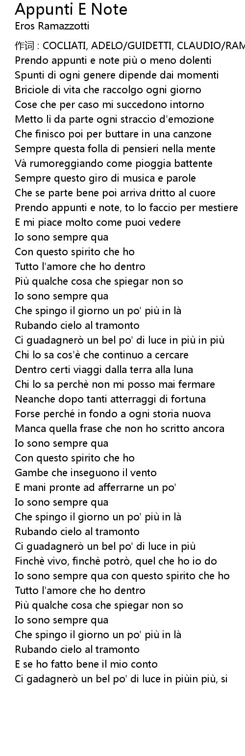 | 作词 : COCLIATI, ADELO/GUIDETTI, CLAUDIO/RAMAZZOTTI, EROS | |