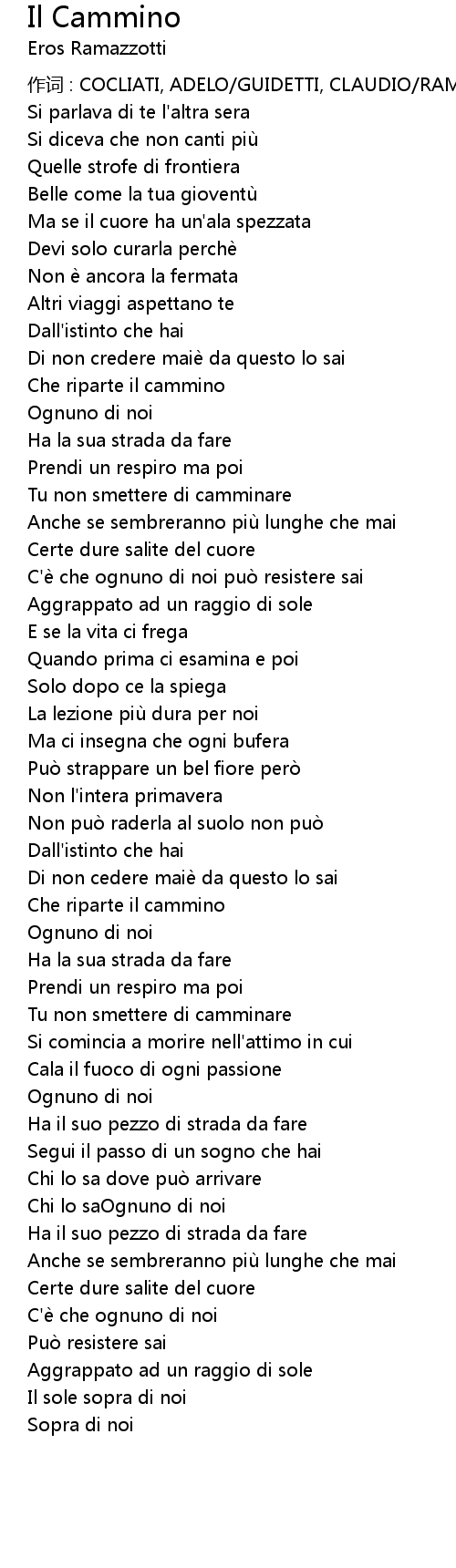 | 作词 : COCLIATI, ADELO/GUIDETTI, CLAUDIO/RAMAZZOTTI, EROS | |