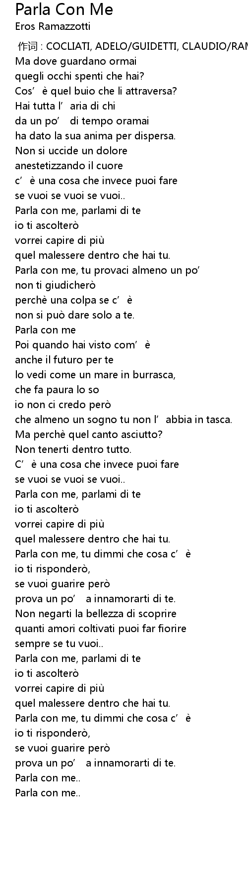 | [02:22.71] | Parla con me, tu dimmi che cosa c’è |