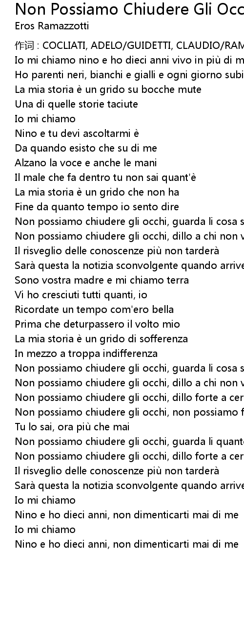 | Song | Non Possiamo Chiudere Gli Occhi |