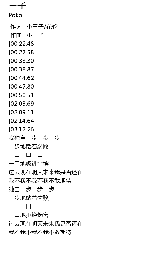 | [00:00.000] | 作词 : 小王子/花轮 |