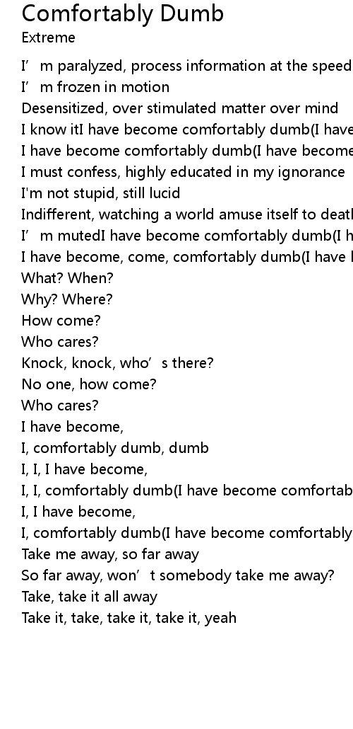 | I know itI have become comfortably dumb I have become comfortably dumb | |