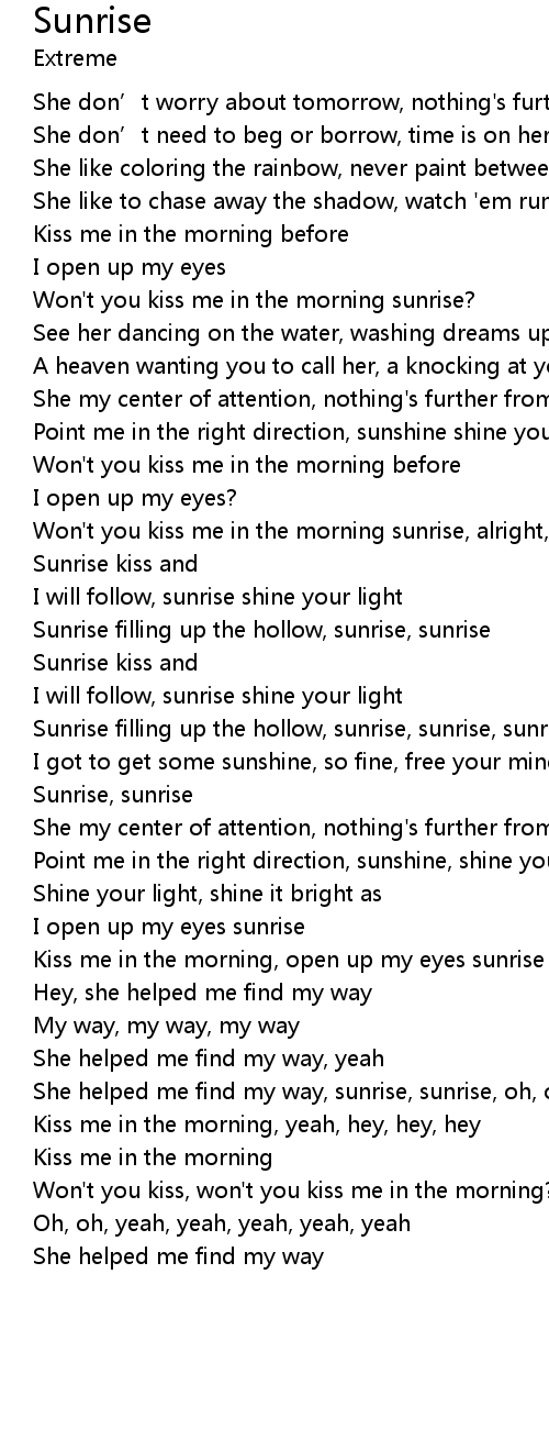 | Kiss me in the morning, open up my eyes sunrise | |