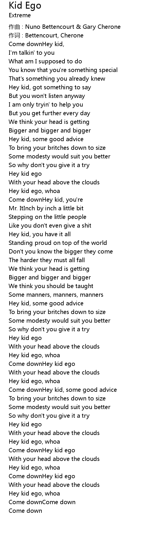 | Come downHey kid ego | |