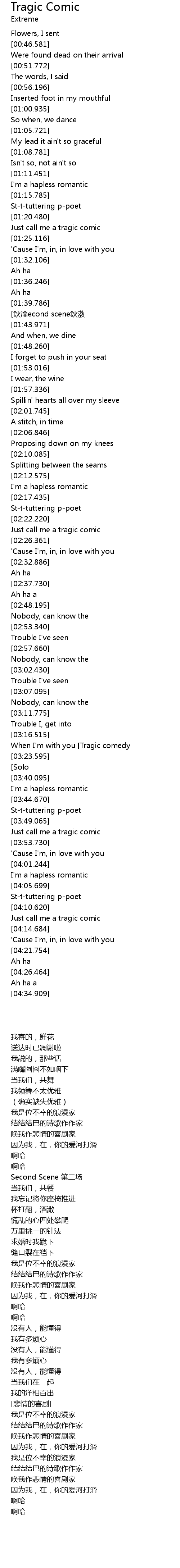| [03:49.094] | Just call me a tragic comic |