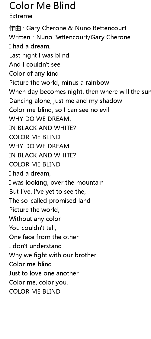 | Song | Color Me Blind |