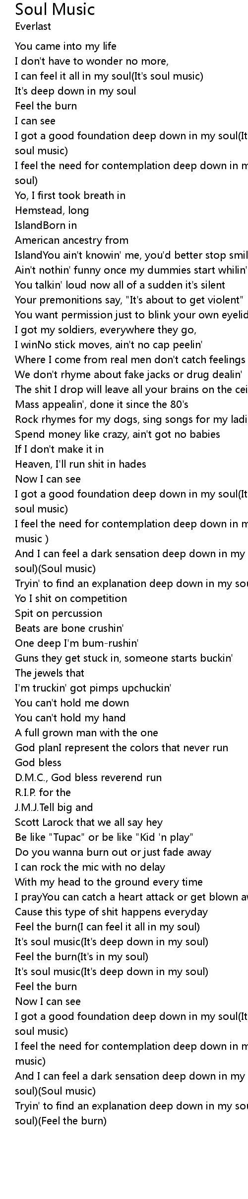 I got a good foundation deep down in my soul(It's deep down in my soul)(It's soul music) |