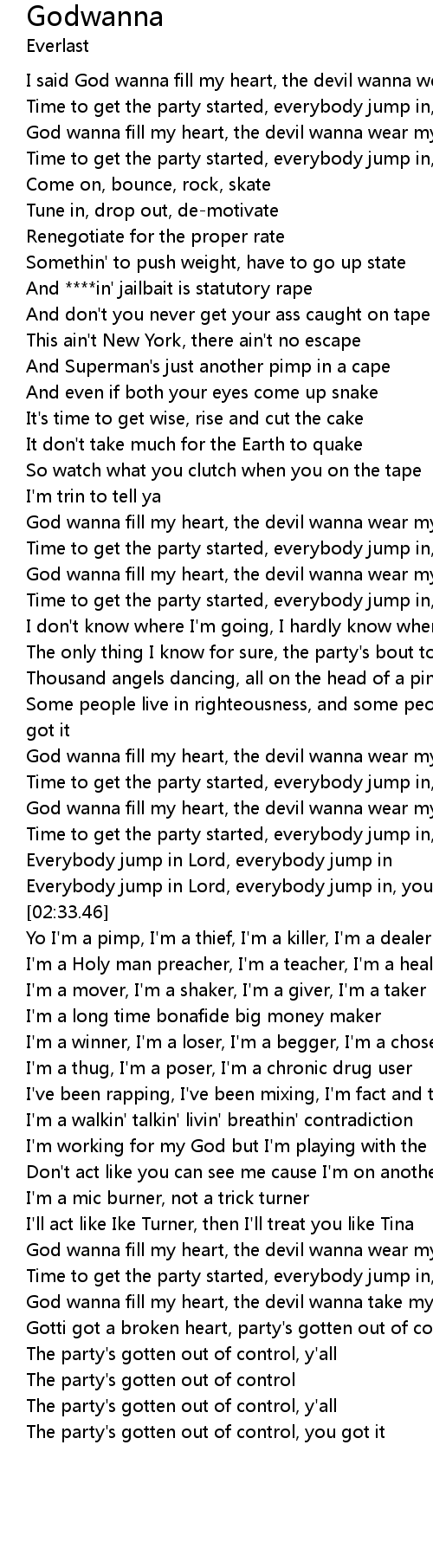 I said God wanna fill my heart, the devil wanna wear my skin |