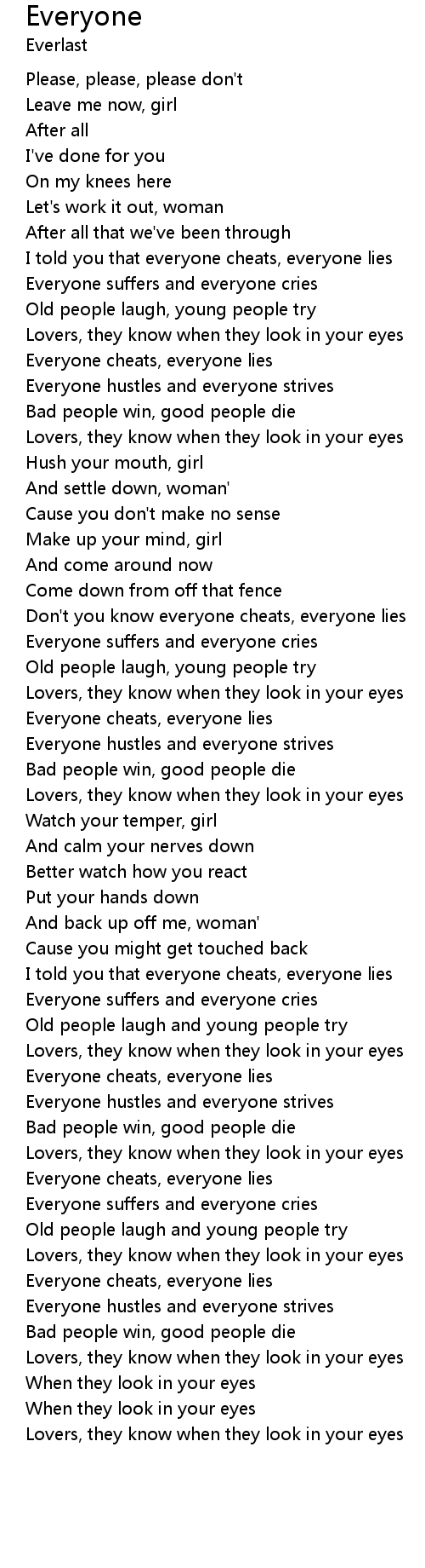 Don't you know everyone cheats, everyone lies |