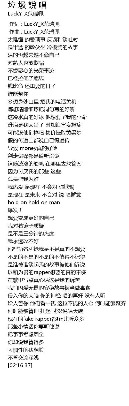 | [00:00.000] | 作词 : LuckY_X范瑞興. |