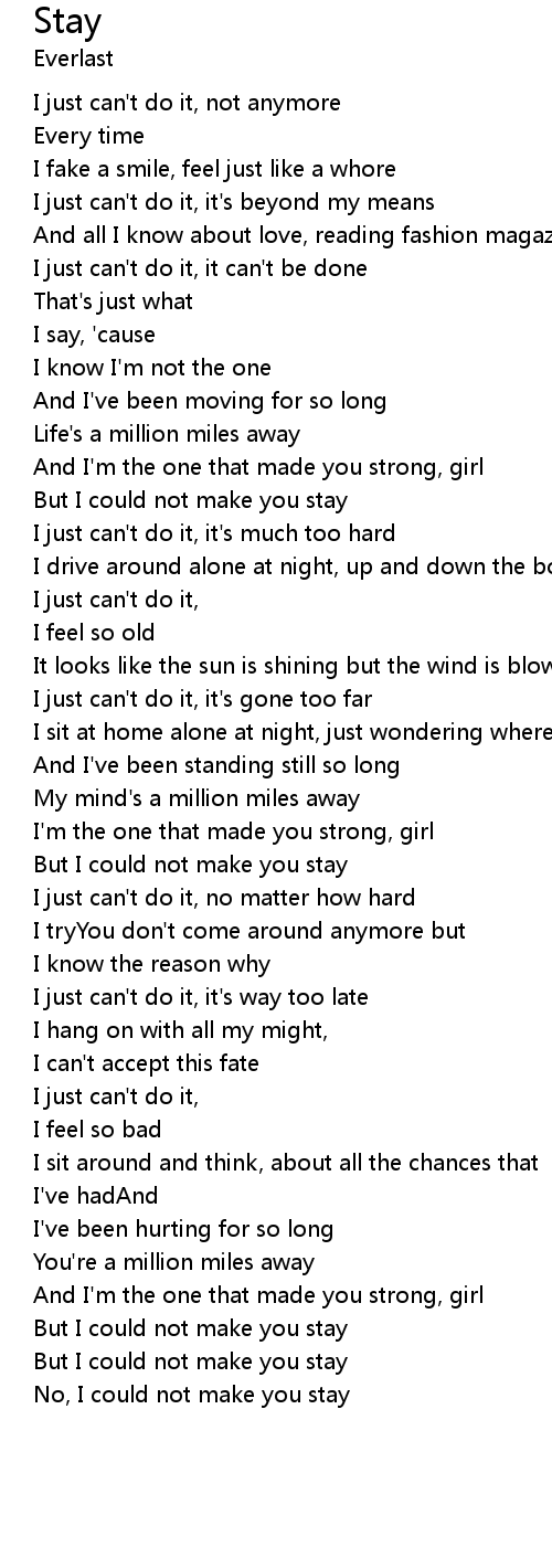 Life's a million miles away |