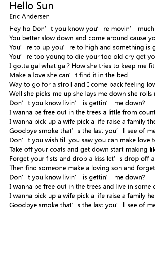 | I wanna pick up a wife pick a life raise a family hello sun | |